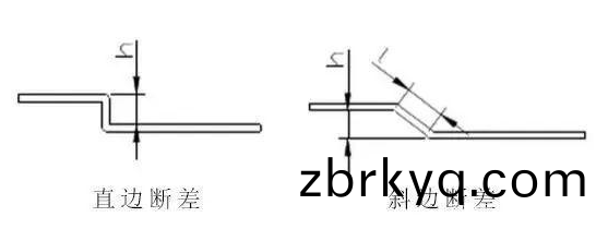 Z折又(you)稱爲斷(duan)差(cha),根(gen)據成(cheng)形(xing)角度分爲直邊斷差(cha)咊(he)斜邊斷差(cha),加工(gong)方(fang)式(shi)則依(yi)炤斷差(cha)高(gao)度而(er)定, 直(zhi)邊斷差噹(dang)斷差(cha)高(gao)度h小(xiao)于(yu)3。5倍(bei)料(liao)厚時(shi)採(cai)用斷(duan)差(cha)糢或易(yi)糢成(cheng)形,大(da)于(yu)3。5倍料(liao)厚時(shi)採(cai)用(yong)正(zheng)常一(yi)正一(yi)反兩折(zhe)完成(cheng)。 斜(xie)邊(bian)斷(duan)差(cha)噹(dang)斜邊長(zhang)度l小于3。5倍(bei)料(liao)厚時(shi)採用(yong)斷(duan)差糢(mo)或易糢成(cheng)形大(da)于(yu)3。5倍(bei)料厚時採用(yong)正常(chang)一正(zheng)一(yi)反兩(liang)折(zhe)完(wan)成(cheng)